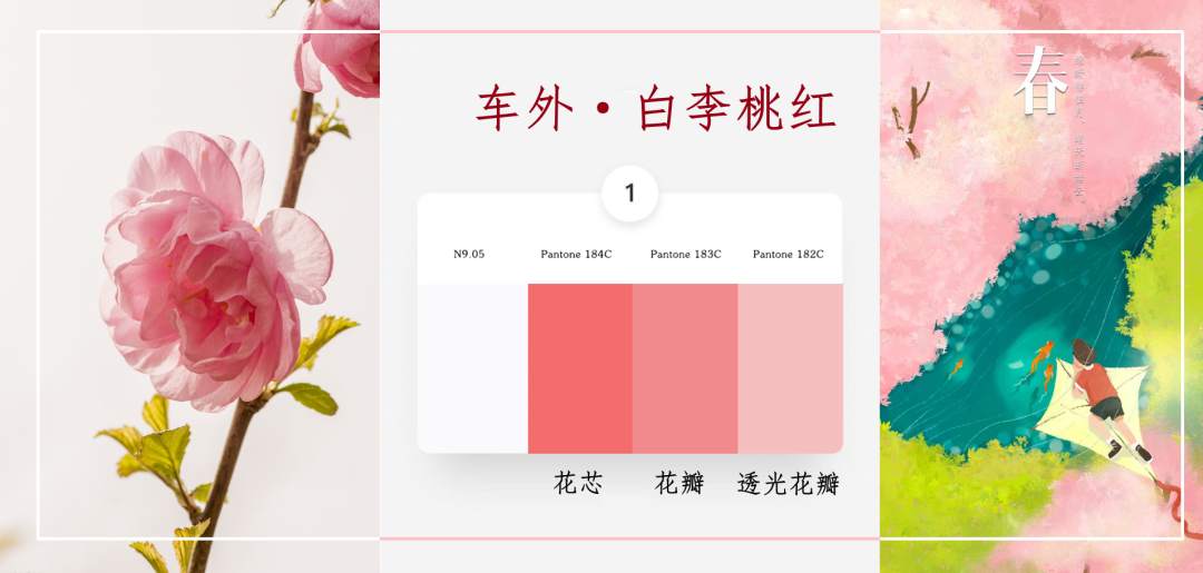 車體の外側(cè)は「春」をイメージした桃色をメインとした塗裝となっており、濃淡の異なる桃色を組み合わせることで、萬物が目を醒ます春や花々が次々と咲き誇る春を表現(xiàn)している。桃色とベースカラーの白を組み合わせることで、活き活きとした春の様子や溫かく、ロマンチックな雰囲気を醸し出している。