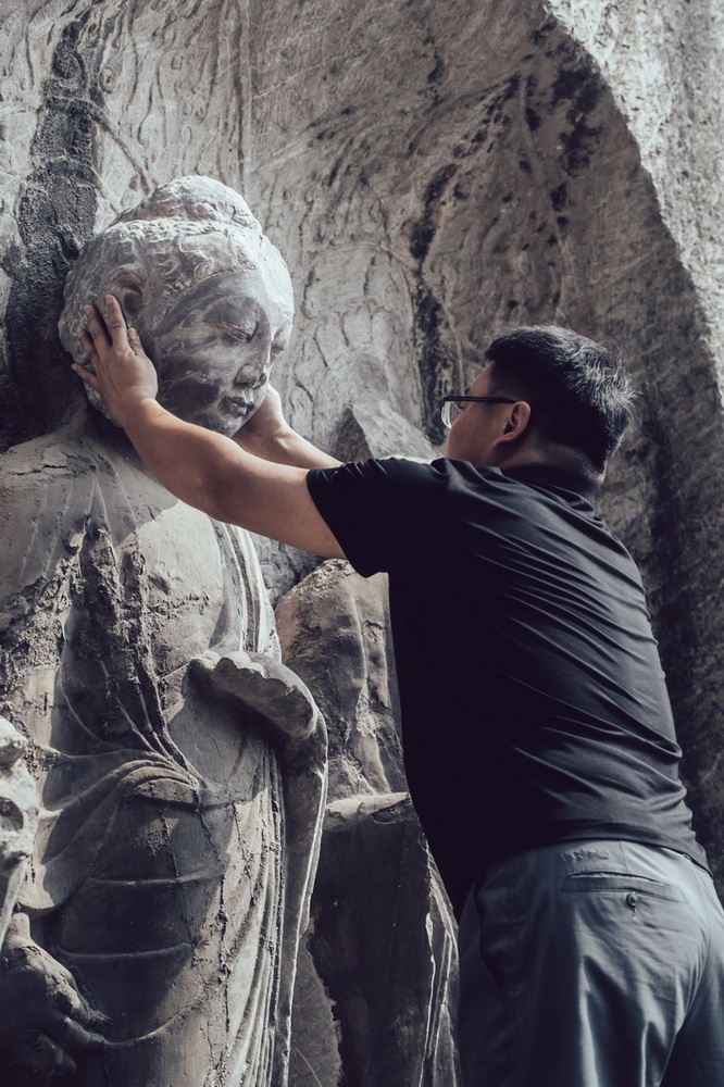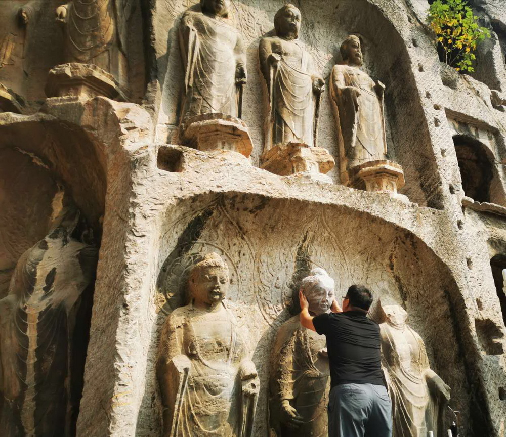 龍門石窟研究院の楊超傑研究員は、「高精度3Dスキャンとプリントの後、我々はプリントされた頭部の肌に処理を施し、文化財(cái)本體の色彩に基づき精密に復(fù)元させた。これを據(jù)え付けたところ、頭部と仏像の斷面がぴったり合った」と述べた。