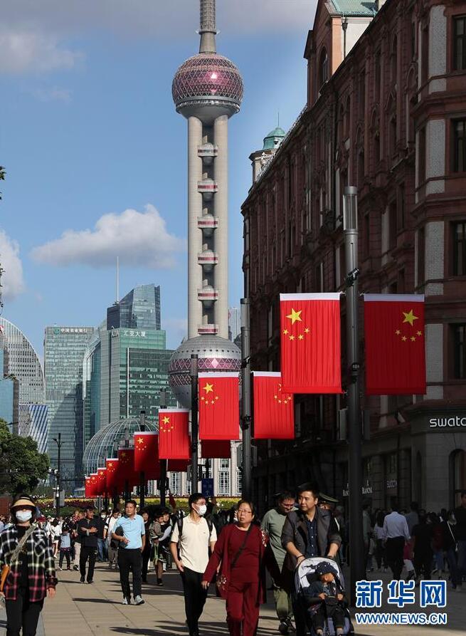 10月8日、上海南京路歩行者天國(guó)の東拓段を歩く観光客(撮影?劉穎)。