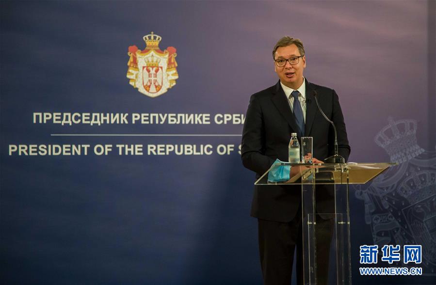 10月6日、ベオグラードでの調(diào)印式に出席した後、記者會(huì)見を行うセルビアのブチッチ大統(tǒng)領(lǐng)。(撮影?石中玉)