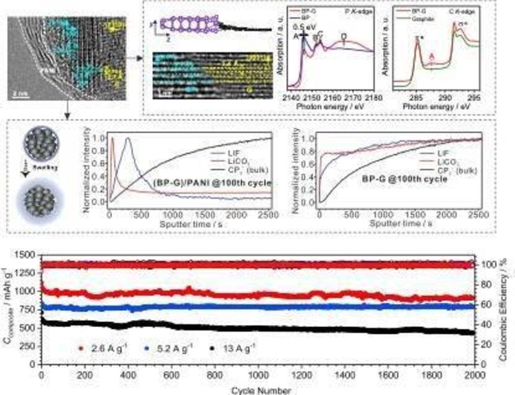 季氏のチームは研究により、黒リンをアルカリ金屬イオン電池の負(fù)極に用いることで極めて高い質(zhì)量?容量が備わるが、層狀構(gòu)造の縁から構(gòu)造破壊が始まりやすいことを発見(jiàn)した??茖W(xué)研究者は高エネルギーボールミルにより、黒リンナノシートと黒鉛ナノシートを平行に並列させる一種の複合材料を作り、リチウムイオンエネルギーがこの複合材料の中で効率的に移動(dòng)できるようにした。