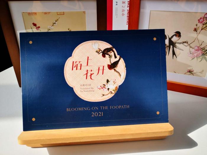 例えば、中國の漢詩が中國語と英語で書かれている卓上カレンダー「BLOOMING ON THE FOOPATH」には、イタリア人?ジュゼッペ?カスティリオーネの作品「仙萼長春図冊」が用いられており、四季の景色に合わせた漢詩が組み合わされている。漢詩の英文訳は著名な翻訳家?許淵衝氏の訳文を採用している。