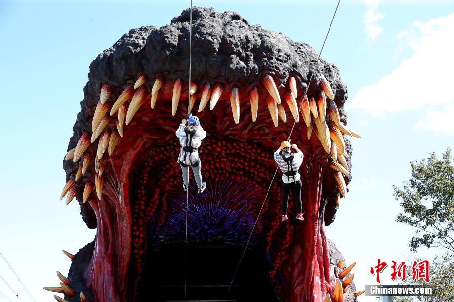 ジップラインでゴジラの體內(nèi)に突入する「ゴジラ迎撃作戦」(寫真著作権はCFP視覚中國が所有のため転載禁止)
