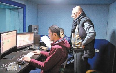 エジプト?カイロのVibrationスタジオで中國ドラマの翻訳作業(yè)をするスタッフ