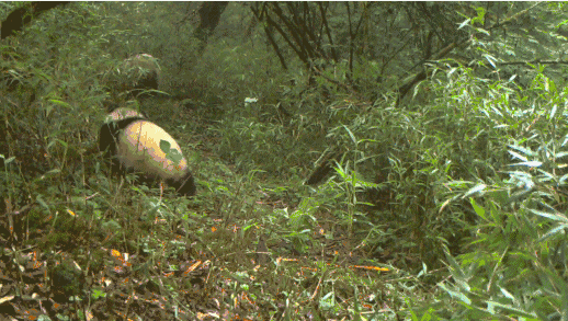 野生パンダの母子が竹林を一緒に散歩! 四川省
