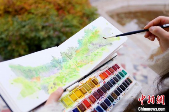 ある年の秋に、劉さんは、蘭州興隆山に遊びに行き、その美しい秋の景色に魅了された?!笇懻妞坤堡扦稀ⅳ饯物L(fēng)景を見(jiàn)て私が感じたことを全部表現(xiàn)できない。そのため、絵具や手帳を持って、もう一度興隆山に行き直し、旅行手帳を作った。景色を手帳に描くと、過(guò)ぎ去ってしまう記憶を摑み取るかのような気分になる」と劉さん。