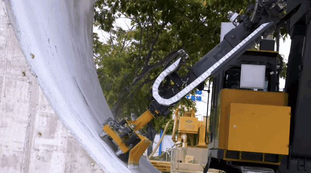 操作者が遠(yuǎn)隔操作の指示を入力すると、このトンネル「清掃員」は複數(shù)工程の歩進(jìn)式自動(dòng)施工作業(yè)を開始した。同ロボットはV字型の両手を使い清掃モードに入る。両手の柔軟な力の加減により、この鉄の巨人に「やさしさ」が添えられ、作業(yè)中にトンネルの表面に傷跡がつかないようにしている。自由度の高い調(diào)節(jié)により、弾性を変更し、柔軟にカッティングできる。操作者は5キロメートル離れた遠(yuǎn)隔操作で超音波測距を行い、リアルタイムで訂正?制御する。同ロボットは6日で5キロメートルの海底トンネルの清掃を行った。