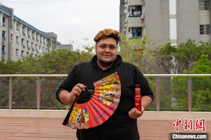 馬智さんは、柳州都市職業(yè)學(xué)院で學(xué)ぶパキスタン出身の留學(xué)生で、「ダブル11」期間中、彼はデオドラント剤と「螺螄(タニシ)」の文字が入った中國の扇子を約100元で購入した。パキスタンでは実店舗でのショッピングが主流であることから、彼は、中國でのネット通販はとてもスピーディで便利な方法だと感じている(撮影?王以照)。