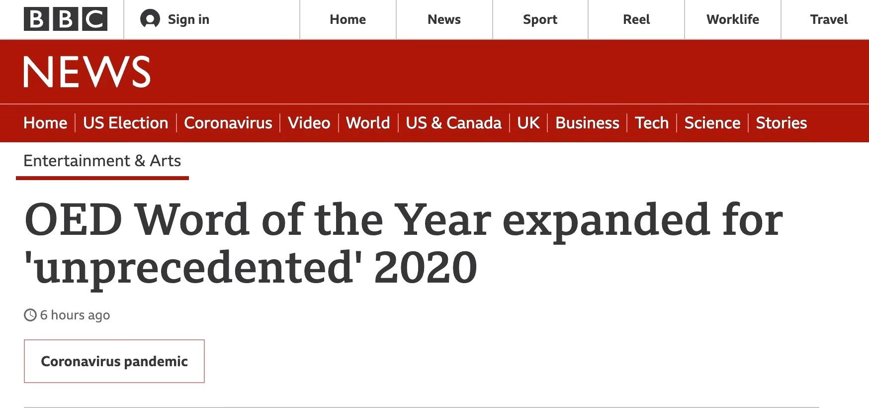 BBCの報(bào)道によると、2020年の「精神、感情、注目ポイント」を反映するためにそれら言葉を選出したとしている。