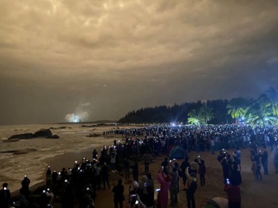 今回の「長征5號」発射には、多くの宇宙マニアたちが注目し、打ち上げられる感動の瞬間を自分の目で見ようと、海辺で夜を過ごした。