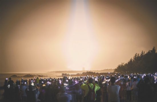 「長征5號」が打ち上げられると、空全體が明るく輝き、砂浜では大きな歓聲が上がった。(編集KN)