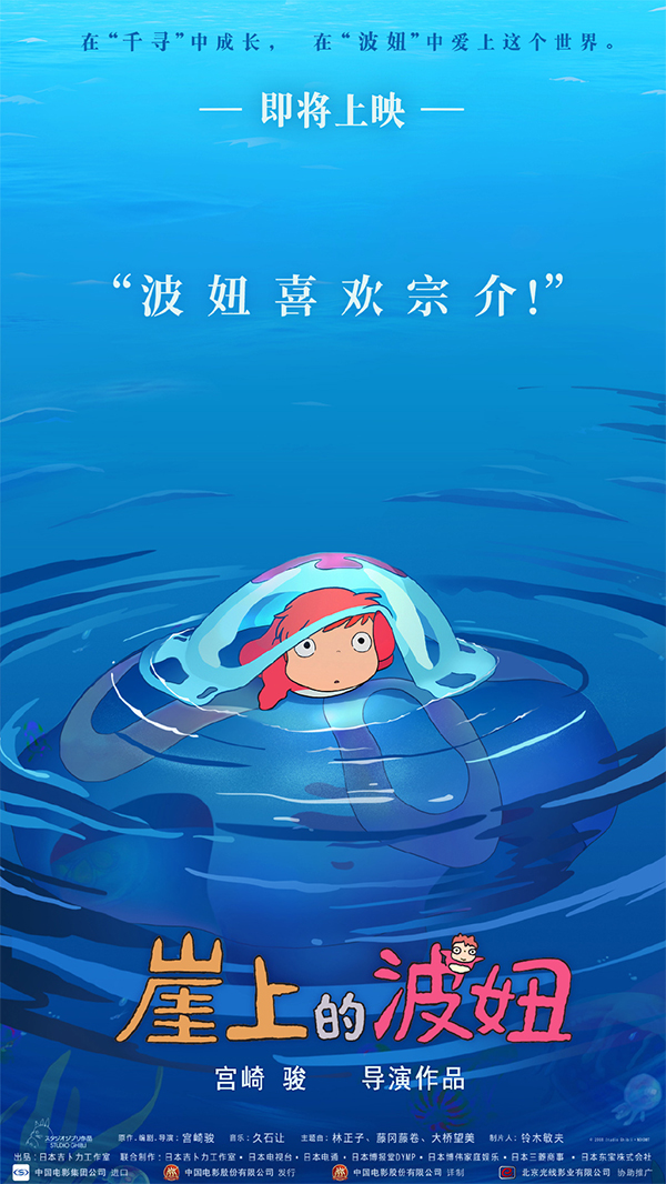 これは2018年の「となりのトトロ」、2019年の「千と千尋の神隠し」に引き続き、中國大陸部で公開される宮崎監(jiān)督の3作目となる。宮崎監(jiān)督も以前、「ポニョは、僕が寵愛している女の子」と語っており、今回の中國大陸部での公開には特に期待が寄せられている。同作品は、魚の女の子ポニョが人間の男の子宗介に出會う物語。まったく新しい世界観で見ている人を楽しい気分にさせ、ストレスの大きな現(xiàn)代の人々の心を癒してくれる。同作品は全て手描きによる作畫で制作されており、その作畫枚數(shù)は宮崎監(jiān)督作品の中でも最多の累計17萬枚以上に達し、2008年の日本における興行収入第1位を手にした。(編集KN)