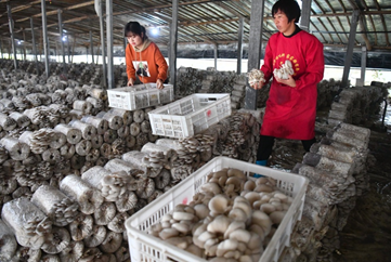 10月13日、安徽省亳州市の家庭農(nóng)場でキノコを収穫する農(nóng)民。(劉勤利/人民図片)
