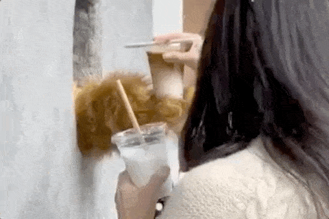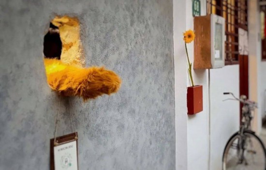 カフェの人気に最初に火が付いたのはこの毛むくじゃらの「クマの手」が理由だった。やがて、この壁の穴の奧にあるストーリーと、このカフェが身體障害者雇用のためにオープンしたことが知られていくと、この店を訪れる人はますます多くなり、まだ正式オープン前だというのに、口コミ評価サイトのカフェランキングで1位になった。ネットユーザーは親しみを込めて、この店を「クマの手カフェ」と呼んでいる。