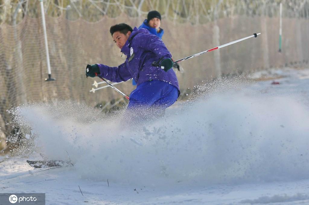 河北省秦皇島市海港區(qū)紫雲(yún)山スキー場でスキーを楽しむスキーヤー(寫真著作権は東方ICが所有のため転載禁止)。
