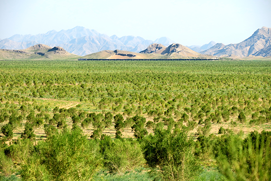內(nèi)モンゴル自治區(qū)阿拉善(アルシャー)左旗サクサウール林拠點。畫像は中國國家林業(yè)?草原局が提供
