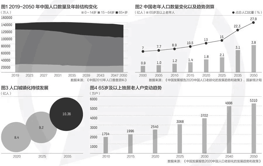 1つは、中國の60歳以上の高齢者人口が同期間終盤に3億人の大臺を突破すると予想されていること。國連は、「高齢化社會」に突入する基準として、60歳以上の人口の割合を総人口の10%以上と設定している。中國を見ると、2019年末の時點で、その割合が既に18.1%に達している。