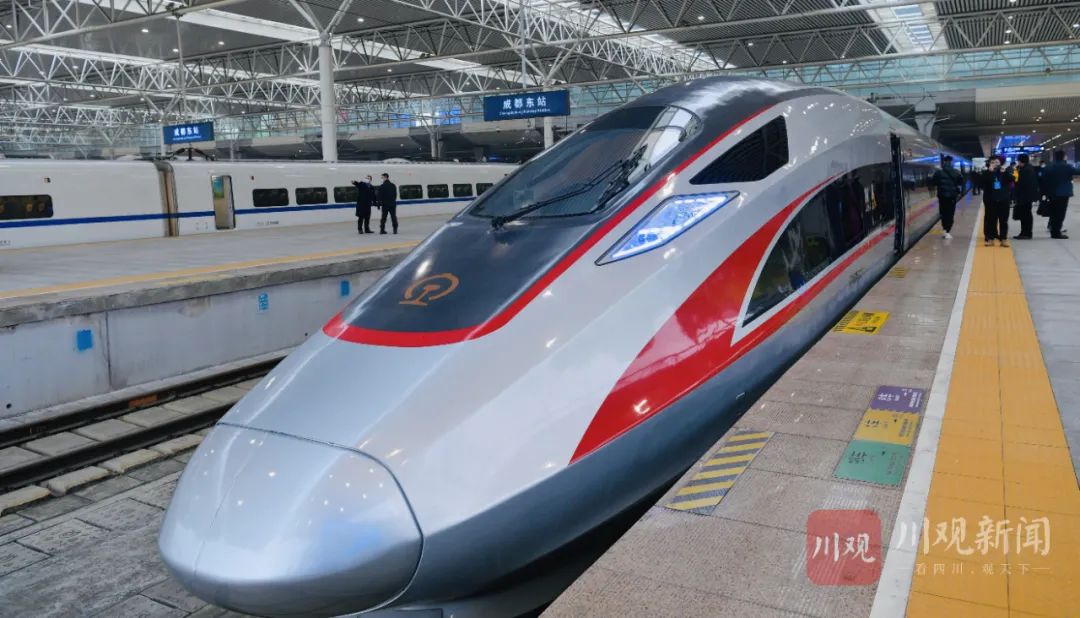 朝晩のラッシュ時(shí)間帯の渋滯に巻き込まれた時(shí)に車に乗っているのと同じくらいの時(shí)間さえあれば、今や四川省成都市から高速鉄道で、火鍋を食べに隣の重慶市に行くことができるようになった。24日午前9時(shí)15分、列車G8607號(hào)が成都東駅を出発。午前10時(shí)17分に、重慶沙坪■駅(■は土へんに覇)に到著した。その所要時(shí)間はわずか62分。成都と重慶を結(jié)ぶ?成渝旅客専用線で、初めて同路線に高速列車?復(fù)興號(hào)が導(dǎo)入され、スピードアップを?qū)g現(xiàn)している。川観新聞が報(bào)じた。