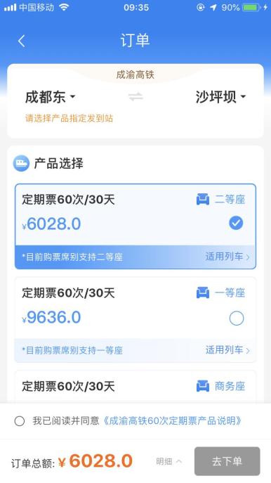 二等座席は最大乗車回?cái)?shù)60回で6028元