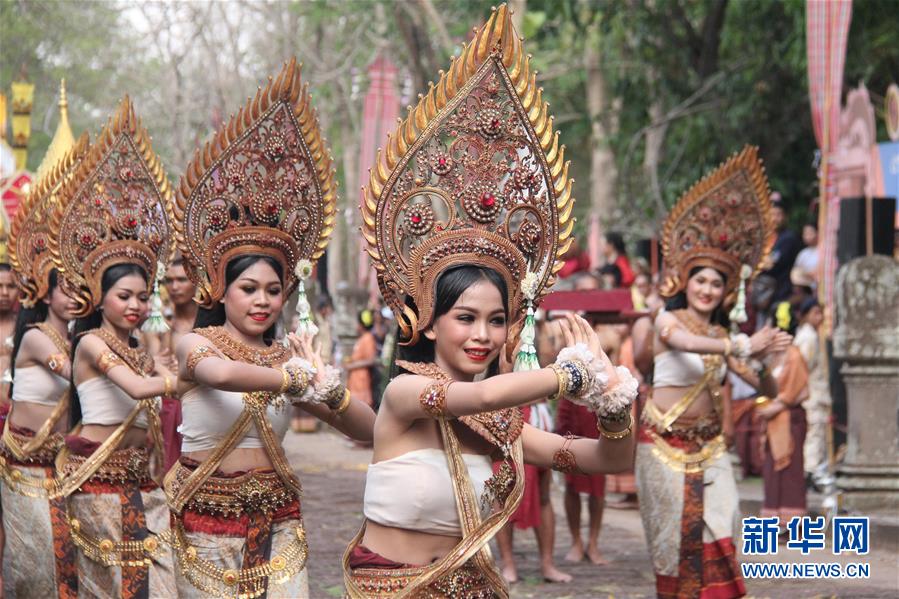 資料寫真、タイ?ブリーラム県のパイロン山で行われた登山祭りでダンスを披露する女性ら(2019年4月6日撮影?楊舟)。