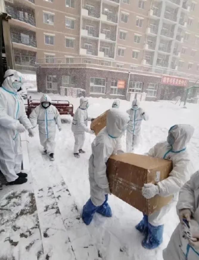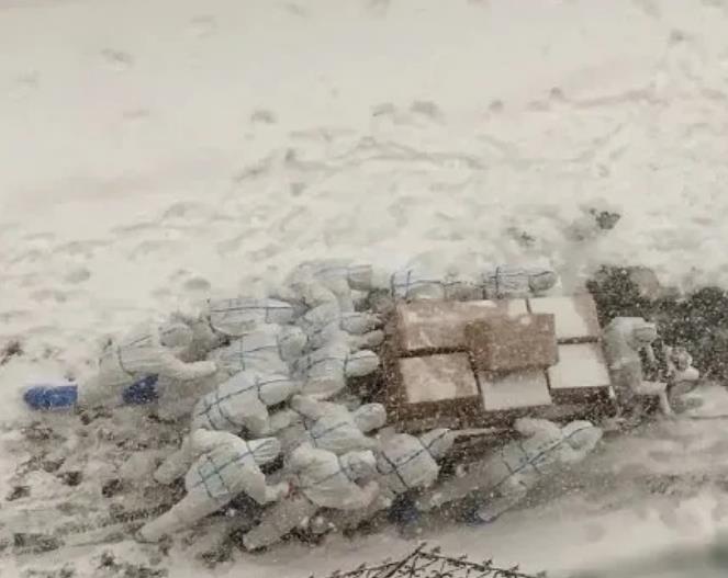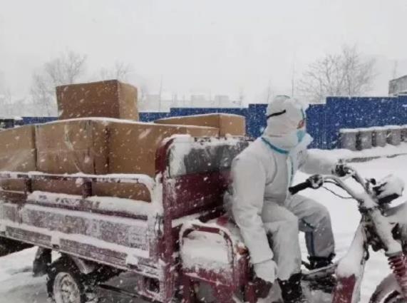 大連海洋大學(xué)では、大雪で道路が非常にスリップしやすくなってしまい、防疫物資を運(yùn)搬する車両が正常に走行することができなくなってしまった。そこで、教職員と學(xué)生のボランティアたちが、吹雪のなか、三輪車を押して防疫物資を運(yùn)んだ。彼らは、一歩一歩三輪車を押しながら前進(jìn)し、全ての學(xué)生寮に物資を送り屆けた。(編集KM)