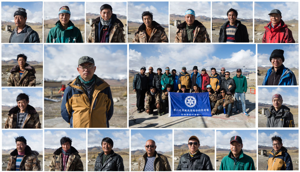 第2回青蔵高原総合科學(xué)調(diào)査「河湖源」氷河?環(huán)境変化調(diào)査隊(duì)がチベット阿里地區(qū)日土県東汝郷阿汝村で記念撮影を行った(合成寫真。17年9月13日撮影)。(撮影?新華社劉東君)