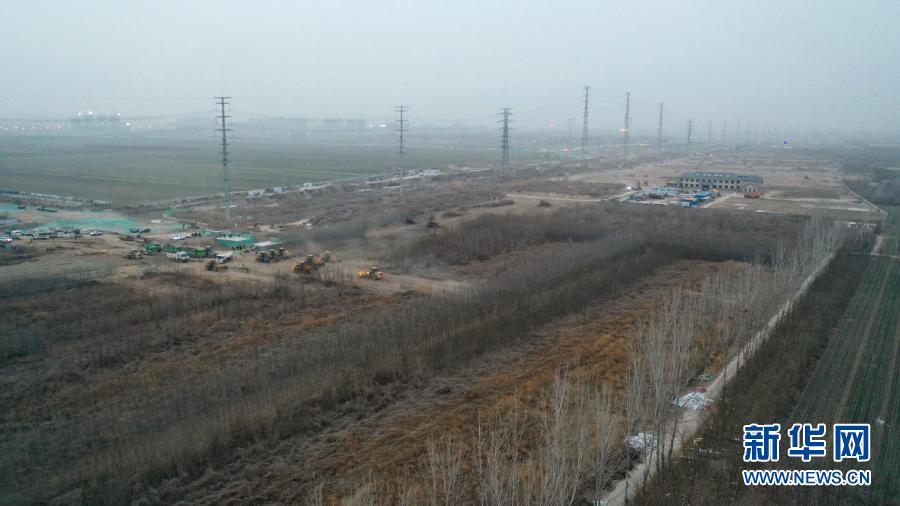 1月13日、石家荘の集中隔離ポイント建設(shè)現(xiàn)場の様子(ドローンで撮影)。