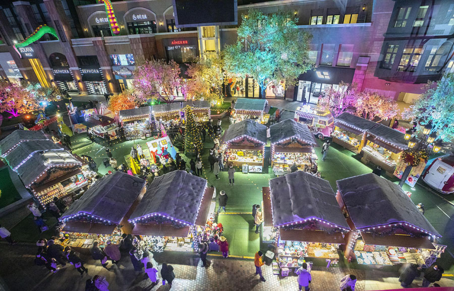 2020年12月23日、北京市の藍(lán)色港灣で、クリスマスムード漂うモンスター?マーケット(寫真著作権はCFP視覚中國が所有のため転載禁止)。
