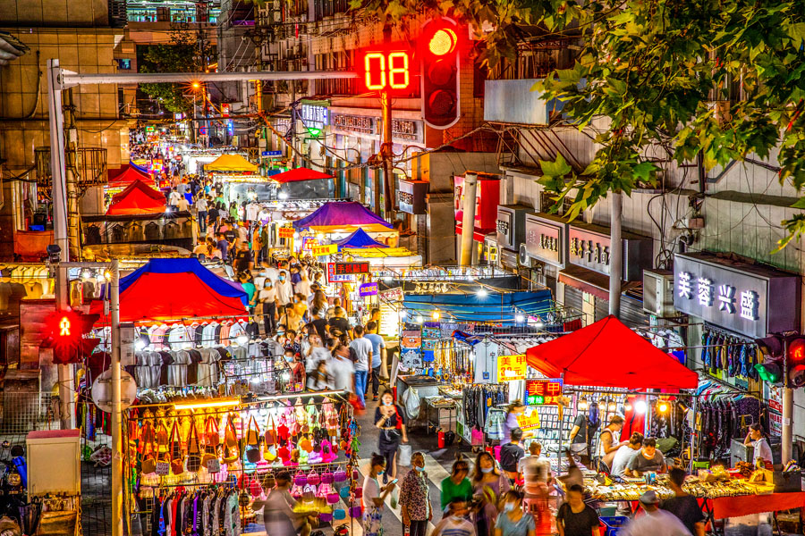 2020年8月10日、湖北省武漢市にある保成路のナイトマーケット(寫真著作権はCFP視覚中國が所有のため転載禁止)。