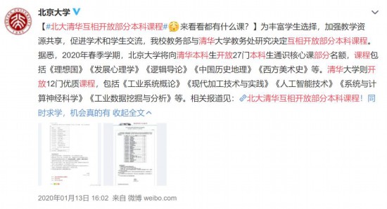さらに、今年1月30日、北京大學(xué)は微博(ウェイボー)公式アカウントで、「今年の春學(xué)期にも、両校は引き続き一部のカリキュラムを相互開放するほか、その種類と數(shù)もさらに拡大する」と発表した。両校は隣接しているため、「お隣さんの授業(yè)を受けに行こう!」はもう「冗談」ではなく実際に可能になり、両校の大學(xué)生の「日常生活」の一部となっている。