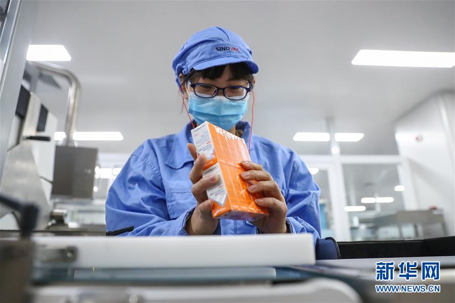 1月6日、新型コロナウイルス不活化ワクチンのバイアル瓶パッケージングの質(zhì)を検査するシノバック?バイオテックのスタッフ(撮影?蘆燁)