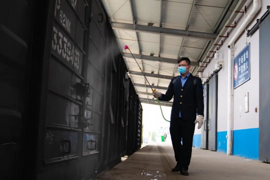 ベトナムから中國(guó)に入る際、360度死角なしの消毒作業(yè)が行われる國(guó)際貨物列車(chē)(撮影?黃冬騰)。
