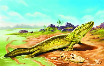 畫像:上陸した早期脊椎動物の復元図 作成?劉野
