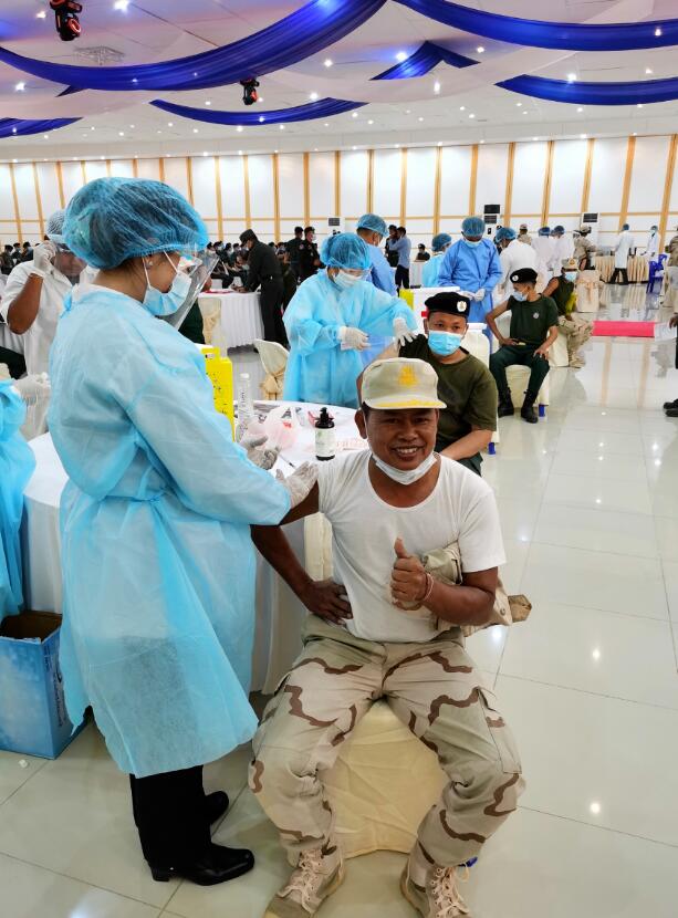 カンボジアの要請(qǐng)を受けて、在カンボジア中國大使館武官処の人員が第16次カンボジア軍支援中國醫(yī)療専門家チームを率いて、同州で接種の全過程に協(xié)力した。