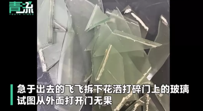 「ドアノブが回る音は聞こえたものの、鍵の部分は動いていなかった」と話す飛飛さんは様々な方法を試し始めたが、何をやってもドアは開かなかった。そこで、シャワーヘッドを取り外して、ガラス窓を割って、そこから手を伸ばして外から開けようとしてみたものの、その隙間は小さすぎて屆かず、どうしても外に出ることができなかったという。