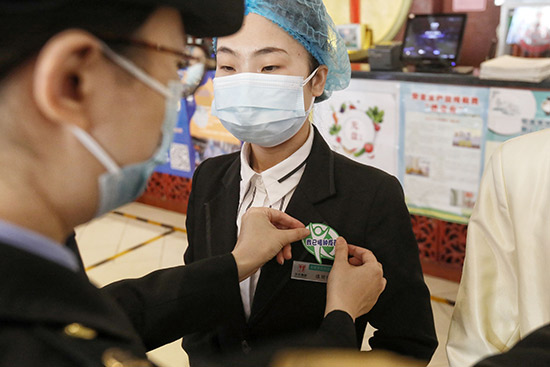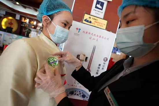 北京市で362萬人が新型コロナワクチン接種済み レストラン店員の胸には「接種済み」マーク