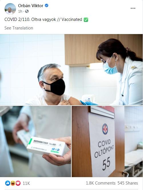ハンガリー首相が中國(guó)製新型コロナワクチンを接種