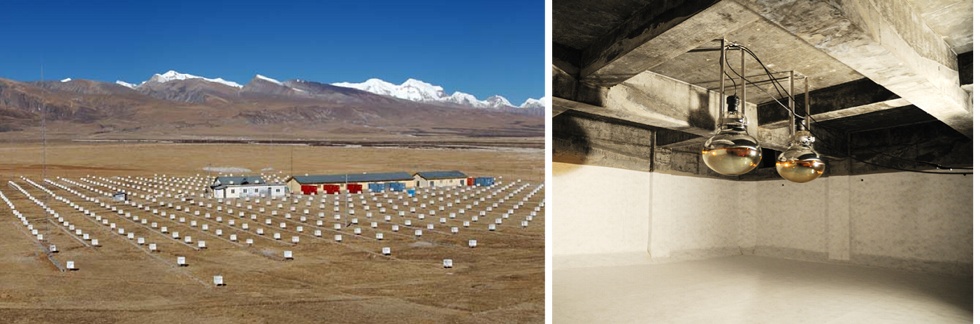 (左)中國(guó)のチベットASγ実験表面配列 (右)中日協(xié)力ASγ実験チームが地下に探査配列を増?jiān)O(shè)し、ガンマ線探査の感度を大幅に上げた。