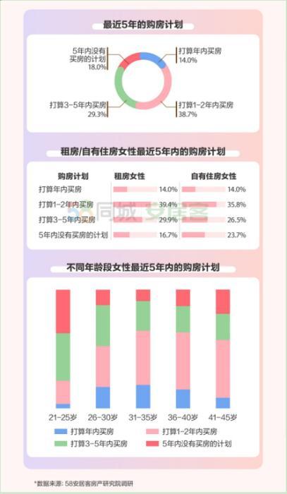 報(bào)告書によると、一線及び新一線都市の20歳以上の女性に対して行った調(diào)査の結(jié)果、これまでの年と比べ、女性の不動(dòng)産購(gòu)入意向は年々強(qiáng)くなっている。82%の女性が5年以內(nèi)の不動(dòng)産購(gòu)入を計(jì)畫しており、そのうち今年住宅購(gòu)入を考えている女性は14%を占め、4割近くの女性が2年以內(nèi)の住宅購(gòu)入を考えていた。