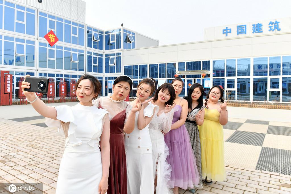「國際女性デー」にあたる8日、河北省雄安新區(qū)容東片區(qū)Gチームの従業(yè)員宿舎と一連の施設(shè)工事G2區(qū)畫で働く女性建設(shè)作業(yè)員たちは、普段の作業(yè)服姿から華やかな衣裝に著替えて、美しくイメージチェンジし、建設(shè)現(xiàn)場(chǎng)での寫真撮影を楽しんだ。(編集KM)