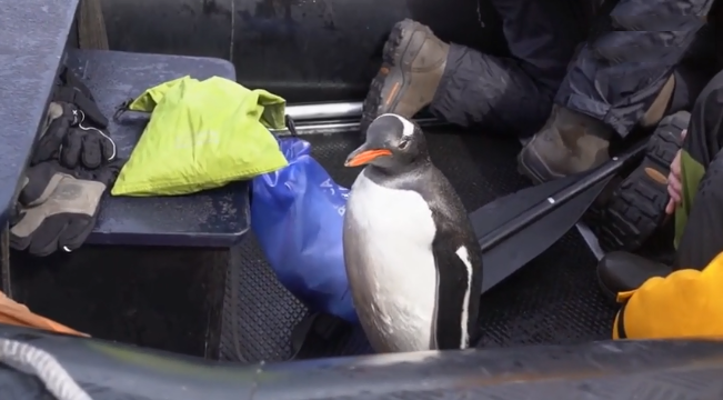 シャチから逃げるペンギンが観光ボートに飛び乗るハプニング動畫が話題に