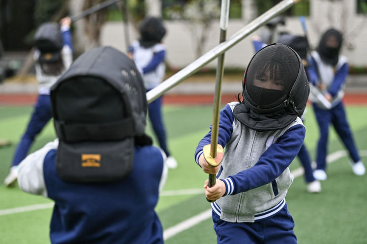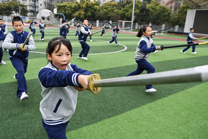武俠スタイル!成都の小學(xué)校で刀法を取り入れた體育の授業(yè)
