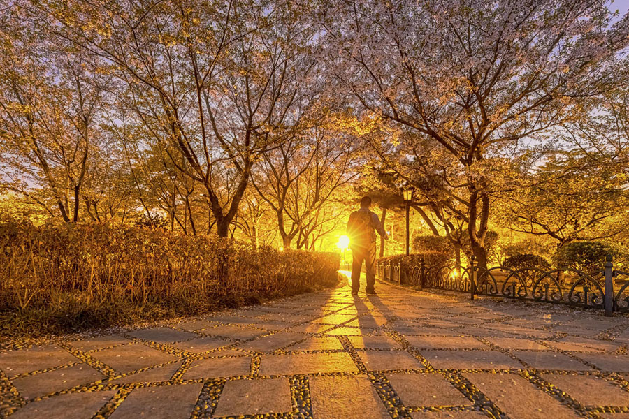 山東省青島市にある中山公園は市民の花見と散策にうってつけの場所だ。園內にある全長660メートルの桜花街の両側には多くの桜の木が植えられている。そこに立つと、まるでピンク色のおとぎ話の世界にいるような感覚を味わうことができる。詳しくはこちらへ
