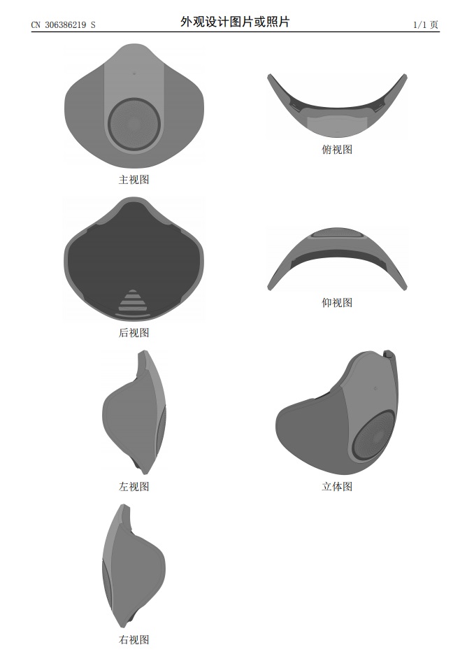 図面を見ると、マスクの正面は円形のデザインで、通風(fēng)口または電動設(shè)備のようなものがついている。マスクは全體的に厚めだ。