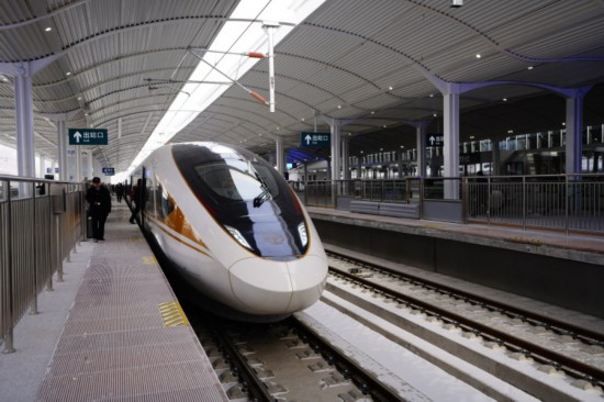 2019年12月30日、開通した京張高速鉄道の太子タウン駅に停まるG8811號(寫真提供?新華社)。