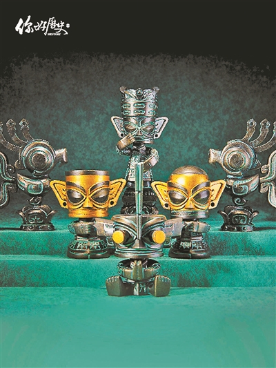 クリエイティブグッズも同時に人気を集め、最近は売り上げも大きく伸びている。一番人気は「三星堆祈福神官」と銘打ったブラインドボックスだ。代表的な文化財である円形の金仮面、青銅の鳥、大立人像、縦目仮面、平頭金仮面の5點をモチーフにした小さな玩具が入っており、オリジナルの四角い頭部や大きな耳といった特徴が再現(xiàn)されていて、かわいらしさに「萌える」。素材はポリ塩化ビニルだが、質(zhì)感は青銅に似ており、緑青までリアルに再現(xiàn)されている。
