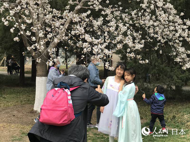 日本で花見と言えば、シートを敷いて車座に座り、賑やかに食事やお酒を楽しむというのが一般的。でもここ、玉淵潭公園での楽しみ方はなんといっても寫真撮影!一眼レフを片手に桜の花を撮影しにやって來るアマチュアカメラマンも多いけれど、メインは「桜と私」寫真。公園のあちらこちらで、桜の前でポーズを撮る人々の姿が見られた。カメラから視線を少し外すのは基本中の基本、さらには足をクロスして雑誌モデルを気取る人、華やかな傘を手に雰囲気を演出する人、紅樓夢の林黛玉よろしくはんなりポーズを決める人……でも「映え」寫真を狙うあまり、桜の枝を折ったり、顔の近くまで引き寄せたりするのは厳禁。そんな不心得者が出ないよう、園內(nèi)には花見マナーの監(jiān)視スタッフがしっかり目を光らせている。