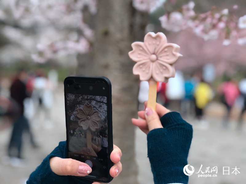 しかし、今年の桜まつりの一大トレンドは何といっても桜アイス!園內(nèi)のあちらこちらに売店が設(shè)けられ、桜の花を象ったアイスが文字通り飛ぶように売れていた。この日売られていた桜アイスは2種類で、15元(約250円)の桜アイス(モモ味)と、ちょっと高級(jí)な29元(約480円)の桜アイス(イチゴ味)。イチゴ味のほうは、玉淵潭公園とハーゲンダッツのコラボ版だ。売店の店員によると、「今は玉淵潭で桜を見て、アイスを食べるのが流行り」。でも実は、流行っているのはどうやらアイスを食べること自體ではなく、桜をバックに桜アイスの寫真を撮り、SNSにアップすること!園內(nèi)では桜アイスを手に寫真を撮る人の姿が數(shù)多く見られた。中には、寫真撮影に夢中でアイスが溶けてしまい、桜の花の形のアイスごと地面に落としてしまう人も?!赣长ā咕绚い猡郅嗓郅嗓恕?/p>