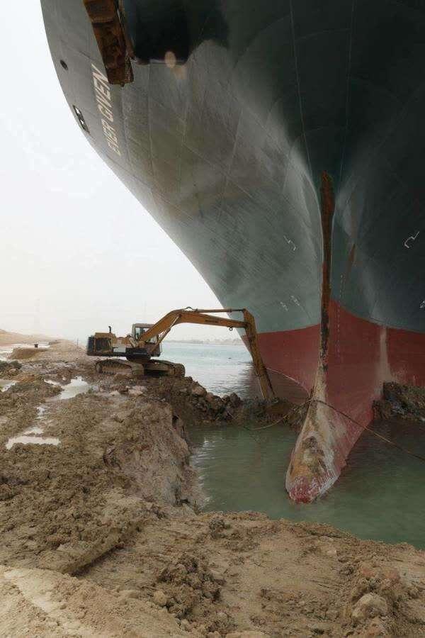 エジプトのスエズ運(yùn)河管理局は29日、運(yùn)河で座礁していたコンテナ船の運(yùn)航が完全に正?;筏郡长趣虬k表した。今回のコンテナ船「救出」活動では、なんと新たな「ネットの人気者」が登場した。それはこの寫真に寫っている小さな掘削機(jī)だ。河岸で座礁船の周囲の土砂を取り除く作業(yè)に全力を挙げるこの小さな掘削機(jī)は、巨大なコンテナ船と明らかなコントラストをなしている。