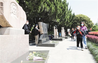 4月4日、上海市にある川沙烈士陵園で、革命の烈士をしのぶ市民たち。(撮影?方■<吉へんに吉>)
